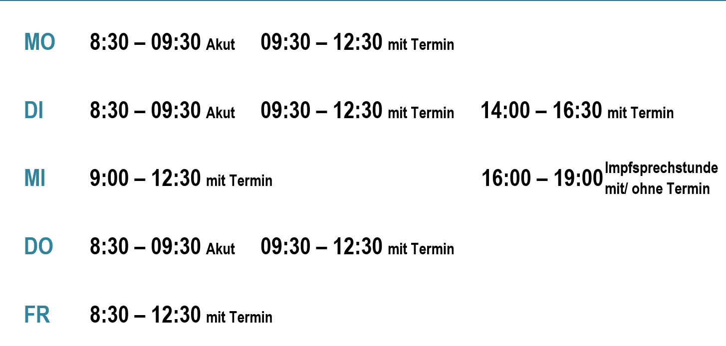 Die Impfsprechstunde findet jeden Mittwoch von 16:00 bis 19:00 Uhr statt.